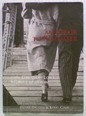 An Affair to Remember. The Greatest Love Stories of all time by Megan Gressor and Kerry Cook. All the world loves a lover, so the saying goes. An Affair to Remember is a warm and intimate account of many of the world's greatest love stories - captivating tales of grand passions, charismatic personalities and extraordinary exploits. Some of these affairs shocked the world, others altered the course of history. Included in this book are the stories of Lord Byron and Lady Caroline Lamb, Humphrey Bogart and Lauren Bacall, John Lennon and Yoko Ono, Elizabeth Taylor and Richard Burton, Edward VIII and Mrs Simpson plus many more. The book has light general wear with a small tape repair to the back cover.