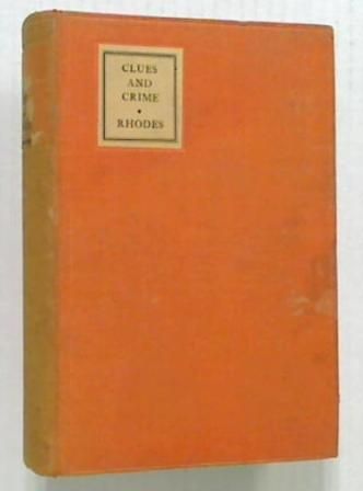Clues And Crime. The Science of Criminal Investigation by Henry T. F. Rhodes. Orange Cloth Boards. The aim of this book is to give an historical account of the progress of the application of scientific methods to the detection of crime. From the 1933 Preface. Some of the paper title tab on the spine has been ripped away and the spine is sun faded. There is light staining on the front covers and light general wear to the book edges. Age staining along the page edges but overall a tidy copy. Previous owners name or inscription on inside front page.