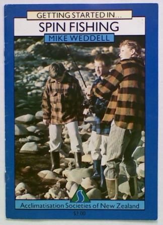 Getting Started In Spin Fishing by Mike Weddell. This small booklet was produced by the Acclimatisation Societies of New Zealand. Mike Weddell, a qualified teacher, gives as his occupation Fly Tier/Fitness Instructor. Born in 1949, Mike brings 23 plus years of salmon and trout fishing experience, by fly, bait and spin fishing, to the pages of this booklet. He took up fly tying in 1965. Mike has had articles on fishing published in all the British angling weeklies and periodicals, and for the last five years has written the weekly angling column for the Otago Daily Times. He was also a major contributor to The Otago Guide to Trout Fishing.