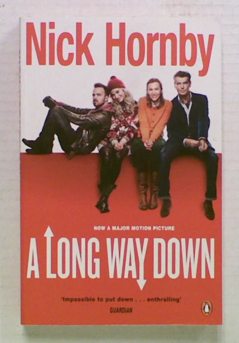A Long Way Down by Nick Hornby. 'Can I explain why I wanted to jump off the top of a tower block?' For disgraced TV presenter Martin Sharp the answer's pretty simple: he has, in his own words, 'pissed his life away'. And on New Year's Eve he's going to end it all.... but not, as it happens, alone. Because first single-mum Maureen, then eighteen-year-old Jess and lastly failed- musician-turned-pizza-boy JJ turn up and crash Martin's private party. They've stolen his idea- but brought their own reasons.