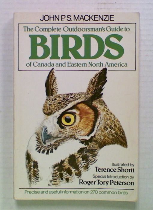 The Complete Outdoorsman's Guide to Birds of Canada and Eastern North America by John P. S. Mackenzie. Illustrated by Terence Shortt. The information on 270 common birds of Eastern North America presented here takes the reader further than standard identification guides are design to do. The author's descriptions are illuminated by years of personal observation and practical experience in the field, and include not only important identification pointers, common and scientific names, and useful spotting hints, but also such things as typical habitats; plumage difference in males, females, and juveniles in spring and autumn; nesting and mating habits; and migration ranges. Beautiful and accurate drawings by one of North America's most skilled bird illustrators augment the value of the text, rendering the species perfectly and in their natural context.