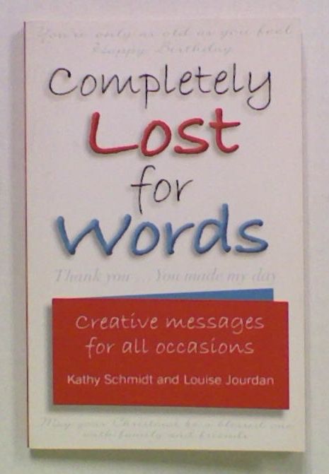 Completely Lost for Words. Creative Messages for all Occasions by Kathy Schmidt and Louise Jourdan. 'Turn your cards into keepsakes with these inspiring and personal messages. You'll never be lost for words with these greetings to suit every occasion. This book gives you the chance to send your friends and loved ones a message they will remember.