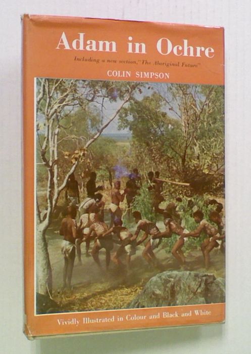 Adam in Ochre. Inside Aboriginal Australia by Colin Simpson. 'Colin Simpson, in Adam in Ochre takes the reader into fascinating parts of Australia which are taboo to the ordinary traveller. You climb the hill of Inyaluk to its painted caves of remarkable aboriginal art, share the sight and sound of the Balnooknook corroboree, meet the living Mosek whom Ted Shawn named as one of the world's greatest dance artists, feel the beauty of a great billabong lagoon white with birds at dawn. The last chapter, which discusses the future of the aborigines and the controversial policy of assimilation, has been completely re-written for this new edition. Adam in Ochre has been called "the most readable and significant book yet written on the natives of Australia" and "a must on the bookshelves of anyone interested in the human kind". The dust jacket has light to medium general wear and now covered with clear plastic. The book remains tight and very tidy. A LARGE BOOK THAT WILL REQUIRE ADDITIONAL FREIGHT.