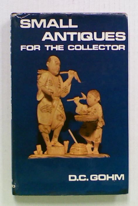 Small Antiques for the Collector by D. C. Gohm. Ex Library Book with all the usual stamps and markings. 'Antiques provide a refreshing divergence from the products of this modern world which are so tuned to the conformity of mass production that it is not surprising that the appeal of individuality in the form of antiques is becoming widespread.' From the flyleaf of this book. The binding is becoming loose from the covers but all pages and plates appear to be present. There is tape ghosting on the inside covers and along the dust jacket edges but overall a complete book.