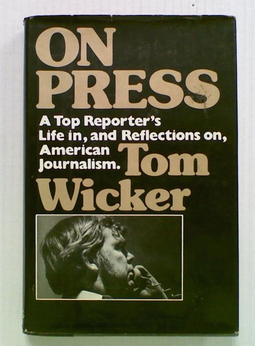 On Press. A Top Reporter's Life in, and Reflections on, American Journalism by Tom Wicker. '"The boys in the newspaper game,' a condescending description of my colleagues and me which I seldom heard anymore, had become on the one hand the ruthless villains of Agnew's warning vision, and on the other the stainless heroes of the Redford-Hoffman movie. . . . A quarter century in the press, from the Sandhill Citizen to The New York Times, had given me a far different view of my trade. I had seldom seen it as heroic, only occasionally as villainous, frequently as ill advised, all too often as inaccurate, sometimes as powerfully effective." The author of these words has, in his years in American journalism, done and reflected much. As a writer on a powerful newspaper, he has been "stroked" in the Oval Office, has stood as moderator in a savage prison riot, and been present at the killing of a president. The dust jacket has medium general wear with scuffs and creasing. The book has age spots down the page edges but remains tight and bright.