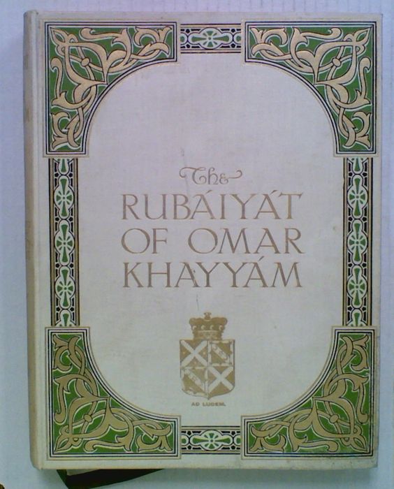 The Rubaiyat Of Omar Khayyam. Rendered into English Verse by Edward Fitzgerald. Illustrated with thirty-eight pictures, from photographs by Mabel Eardley-Wilmot. (pictures have been tipped in). All of the illustrations in this edition are reproduced from photographs specially taken for it in the East by Mrs. Eardley-Wilmot. The initial letters and decorations have been specially designed by Mr. W. G. Johnson. Rough cut pages and bound in Decorative white Cloth with gold and green embellishments. The book has light general wear with some stains down the page edges but overall this book has faired well over time. There is a small remnant of a removed book prize sticker on the inside front page and a comment -in pencil stating that "this book is no longer considered authoritive". A LARGE BOOK THAT WILL REQUIRE ADDITIONAL FREIGHT.
