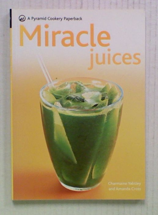 Miracle Juices by Charmaine Yabley and Amanda Cross. A Pyramid Cookery Paperback. 'Wholesome and invigorating, juices are the ultimate health drink. Drinking one or two glasses of fruit or vegetable juice a day will give you all the vitamins and minerals you need - the easy way! Over 50 nutritious juices recommended to combat specific ailments such as asthma and high blood pressure. Quick and easy to prepare, each juice is guaranteed to boost health and vitality. Nutritional analysis of every recipe details the vitamin, maineral, and calorie content.'