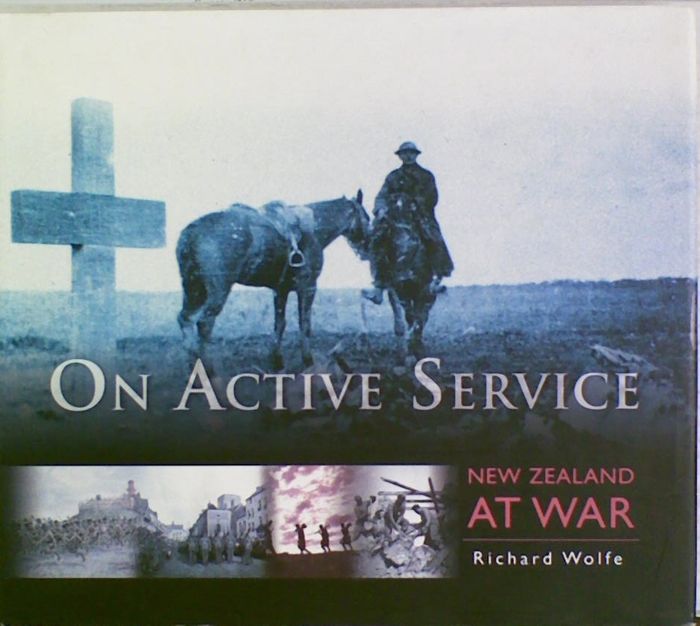 On Active Service: New Zealand at War by Richard Wolfe. 'From earliest tribal conflicts to involvement in major campaigns and peacekeeping exercises, On Active Service: New Zealand at War recounts this country's war experience. Camaraderie and teamwork at the front, those left behind to keep the home fires burning, victory and defeat - they are all here, richly illustrated with evocative images from our fighting past. Accompanying these images is a social commentary recounting the experiences of ordinary New Zealanders, whether on active service or providing support from the home front. On Active Service: New Zealand at War includes chapters on early tribal conflict, the New Zealand Wars, the South African War, the First and Second World Wars, the Cold War, and peacekeeping.' The dust jacket has light general wear with some fading and curling along the edges but the book remains tight and bright.