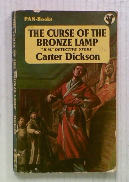 The Curse of the Bronze Lamp by Carter Dickson (John Dickson Carr). 'The Curse of the Bronze Lamp is a fascinating mystery, which, recalling the alleged Tutankhamun 'curse' of the 1920s, is the favourite work of its author. It is the result of a night-long debate with the famous detective-story writer Ellery Queen, in which it was agreed that the "most fascinating gambit in detective literature is the 'miracle' problem of physical disappearance". The book has medium general wear with small chips around the covers edges and some tape repair on the inside front page to hold in the binding block.