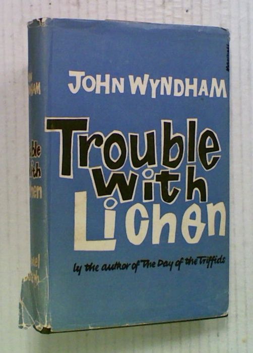 Trouble With Lichen by John Wyndham. "'There are," said Francis Saxover, whose discovery forms the hub of this story, "quite half a dozen major discoveries only jus below the horizon at this moment: and nobody is making the least attempt to prepare for any of them." Consequently, when he made his greatest discovery and was able to offer the world 'one of the age-old dreams of man' - at a price - there was no competent body to handle it, nor even to advise him. And, as a man with few illusions, he was in sore need of advice, for. as he observed: 'This thing is in the megaton range, all right. Of course, it isn't as spectacular as the nuclear boys' fireworks, but it is more important - it is also more disruptive, and potentially a great deal more beneficial,' From the fly leaf of this book. The dust jacket has medium general wear with rubbing along the edges and some tape repairs with small chips but the book remains tight and bright. Previous owners name or inscription on inside front page.
