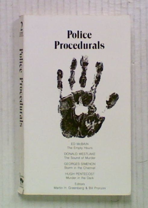 Police Procedurals : Academy Mystery Novellas (Volume Two). Edited by Martin H. Greenberg and Bill Pronzini. 'Many of the short novels in this exciting new series have never before been collected. Editors Martin H. Greenberg and Bill Pronzini have chosen works by some of the most respected writers of mystery fiction and have organised these novellas into separate genres. Contents : Ed McBain - The Empty Hours. Donald Westlake - The Sound of Murder. Georges Simenon - Storm in the Channel. Hugh Pentecost - Murder in the Dark.' The book has a slight lean and a stain on the top edge of the front pages but remains tight and bright.