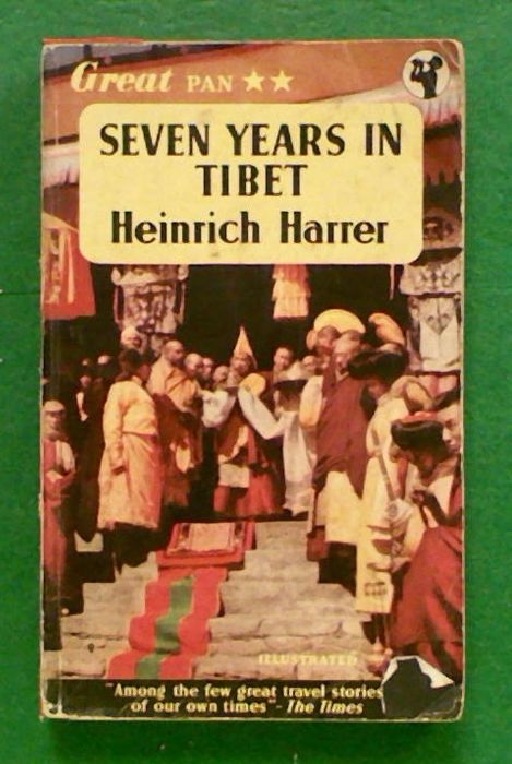 Seven Years in Tibet by Heinrich Harrer. 'A landmark in travel writing, this is the incredible true story of Heinrich Harrer's escape across the Himalayas to Tibet, set against the backdrop of the Second World War. Heinrich Harrer, already one of the greatest mountaineers of his time, was climbing in the Himalayas when war broke out in Europe. He was imprisoned by the British in India but succeeded in escaping and fled to Tibet. Settling in Lhasa, the Forbidden City, where he became a friend and tutor to the Dalai Lama, Heinrich Harrer spent seven years gaining a more profound understanding of Tibet and the Tibetans than any Westerner before him.' The book has medium general wear with chips and repairs to the binding. A much read copy but holding together well.