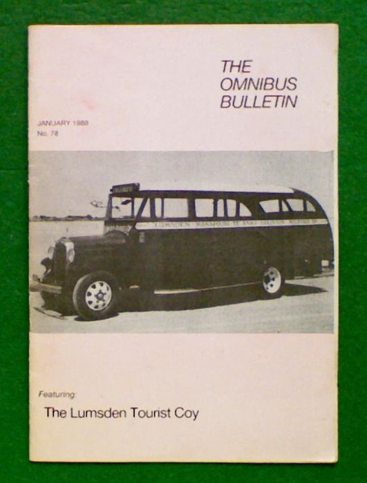 The Omnibus Bulletin: January 1988 No. 78. Edited by Allan Lang . 'Featuring The Story of the Lumsden Tourist Company by Gordon Sims. A small stapled card booklet which was published monthly by OB Publishing, New Zealand.