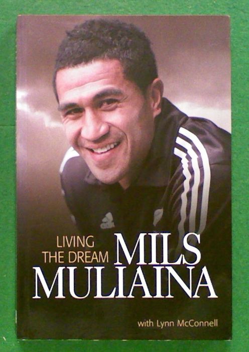Mils Muliaina: Living The Dream - with Lynn McConnell. Autographed and has personal message to original owner. "Malili Muliaina, or Mils as he is better known, is the most capped fullback in All Blacks rugby. But few of his famous forebears in the position can have experienced as much as the transplanted Southlander. The schoolboy international made his mark initially in Sevens, winning a Commonwealth Games gold medal and a Sevens World Cup medal, before settling into mainstream rugby. But along the way he was embroiled in personal controversy from which he emerged to become established as a world-class performer in his position. He suffered the disappointment of two unsuccessful Rugby World Cup campaigns, but also shared in some of the highs reached by the All Blacks in the interim. His is a story of a triumph over adversity and a living demonstration that dreams can come true." Great condition, with only a few creases from use.