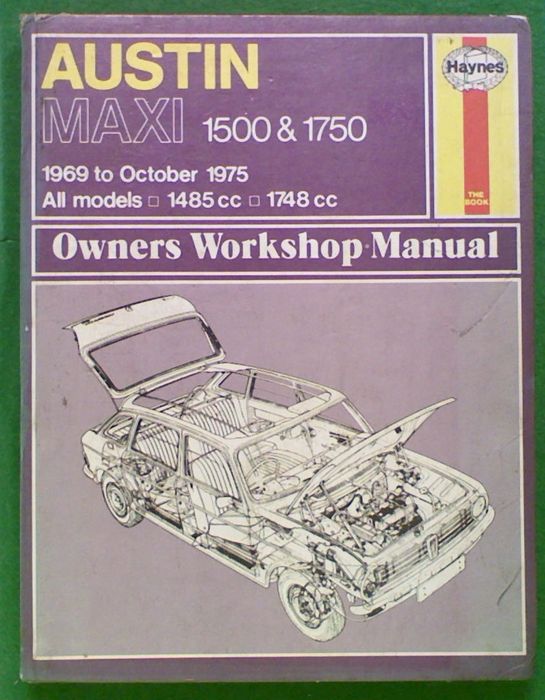 Austin Maxi 1500/1750 Owners Workshop Manual by J H Haynes and B L Chambers-Hunt. This manual covers: Austin Maxi 1500 (1485cc), Austin Maxi 1750 (1748cc) and Austin Maxi HL. 1748cc. 1969 to October 1975. This manual is for do-it-youself minded MAXI motoring enthusiasts. It shows how to maintain these cars in first class condition, and how to carry out repairs when components become worn or break.