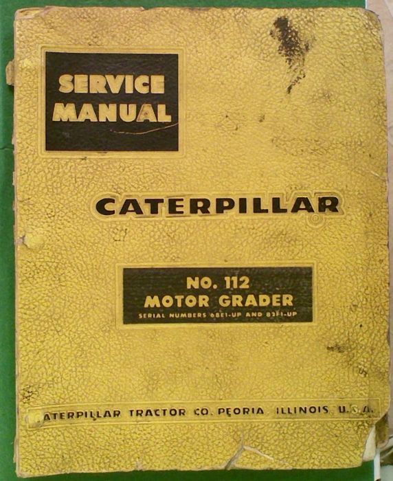 Caterpillar No.12 Motor Grader Service Manual. Serial numbers: 68E1 and 82F1-UP. This manual covers: engine, power transmission units, controls, hydraulic system and steering and seat, fuel tank and miscellaneous.' This manual is in a 'Well worn" Workshop condition with many bumps and bruises !!