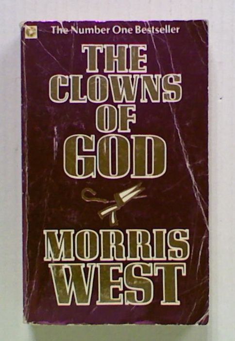 The Clowns of God by Morris West. 'The reigning Pope, Gregory XVII, stuns the Vatican with the claim that he has received a private revelation of the end of the world and the second coming of Christ. Is he a madman - as the cardinals suspect - a mystic or a fanatic gambling for supreme power? The sweep of the story, its compelling drama and rich variety of characters make this without doubt the finest novel Morris West has ever written. The book has medium general wear with creasing to the covers and a previous owner's name on the inside frontpage.