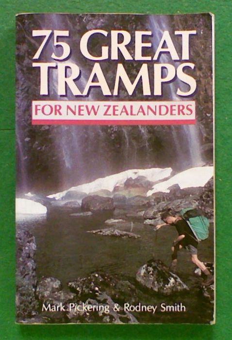 75 Great Tramps in New Zealand (1986) by Mark Pickering and Rodney Smith.'This book should not be used as the sole reference to the routes it describes. People planning to venture along these routes are advised to consult and use the relevent topographical maps. Map references are provided at the beginning of each route. The old inch to mile series is currently being replaced by the metric version. Reference is to up-dated maps wherever possible. All altitudes are measurements in this book are metricated. The publisher would like to thank Sue and Lindsay Cuthbertson for their kind assistance with the text and illustrations.' This copy has much wear and remain in a back-pack condition.