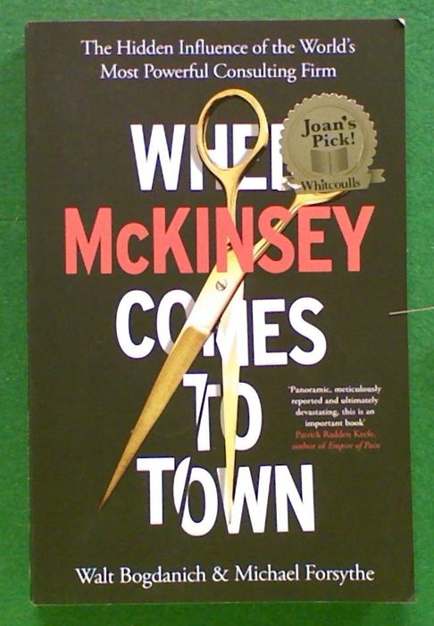 When McKinmsey Comes to Town: The Hidden Influence of the World's Most Powerful Consulting Firm by Walt Bogdanich and Michael Forsythe. 'An explosive exposé of the world's most prestigious and successful management consultancy McKinsey earns billions advising almost every major corporation as well as countless governments, including Britain's, the USA's and China's. It boasts of its ability to maximise efficiency while making the world a better place. Its millionaire partners and network of alumni go on to top jobs in the world's most powerful organisations. And yet, shielded by non-disclosure agreements, its work remains largely secret - until now. In this propulsive investigation, two prize-winning journalists reveal the reality. McKinsey's work includes incentivising the prescription of opioids; ruthless cost-cutting in the NHS; executing Trump's immigration policies (the ones that put children in cages). Meanwhile its vast profits derive from a client roster that has included the coal, tobacco and vaping industries, as well as some of the world's most unsavoury despots. And for the last six decades, McKinsey has been the brains behind many of the most loathed and controversial business practices: mass lay-offs, outsourcing overseas, soaring executive pay, as well as the key innovations that led to the financial crash.'
