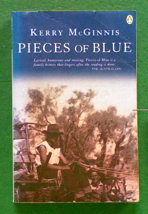 Pieces of Blue by Kerry McGinnis. 'At the age of six, Kerry McGinnis loses her mother. Her father, left with four young children to raise, gathers up his family and leaves the city to go doving. For the next fifteen years, the McGinnis clan travels the continent, droving, horse breaking and living off the land. Kerry grows up in the harsh outback, and the animals that inhabit the land are her closest friends.' The book has much wear with creasing of the covers and light stains on the page edges but remains tight.