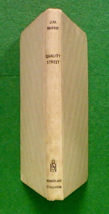 Quality Street (Hard Cover) by J. M. Barrie with illustrations by Hugh Thomson. The book has general wear around the edges and bumps to the corners. Faded spine and foxing along the page edges but overall still tight and bright. Previous owners name or inscription on inside front page.