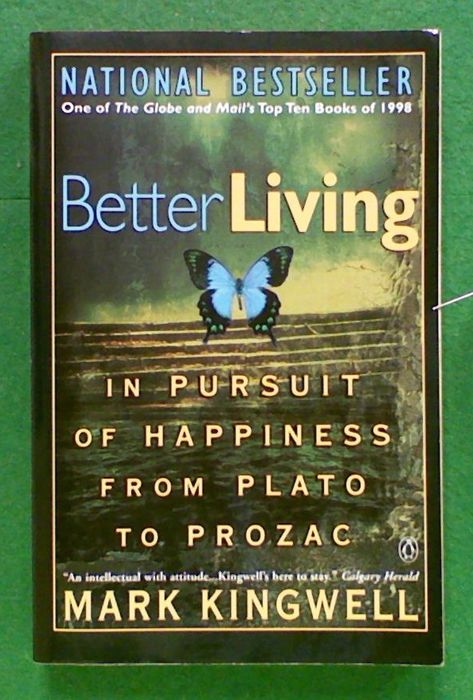 Better Living: In Pursuit of Happiness from Plato to Prozac by Mark Kingwell. 'We all think that we know what happiness is, or at least that we would like more of it. But the pursuit of this rather abstract commodity may be at once the simplest and the most vexing of human endeavors. In Pursuit of Better Living from Plato to Prozac is an exploration of the idea of happiness, the ways in which that idea has changed over the course of history, and how it influences not only individual lives, but also economic and political thinking, psychological investigation, medical practice -- in fact all facets of human life. Featuring Mark Kingwell's unique combination of cultural reportage, historical investigation, and philosophical reflection, In Pursuit of Happiness excavates layers of manipulation to seek out a happiness uncontaminated by technology, advertising, and popular culture. From a meditation on the relevance of Platonic ideas about happiness to a running commentary on the author's week at a "happy camp" in Massachusetts, this is an utterly absorbing and often hilarious exploration of just what it is that makes life worth living.'
